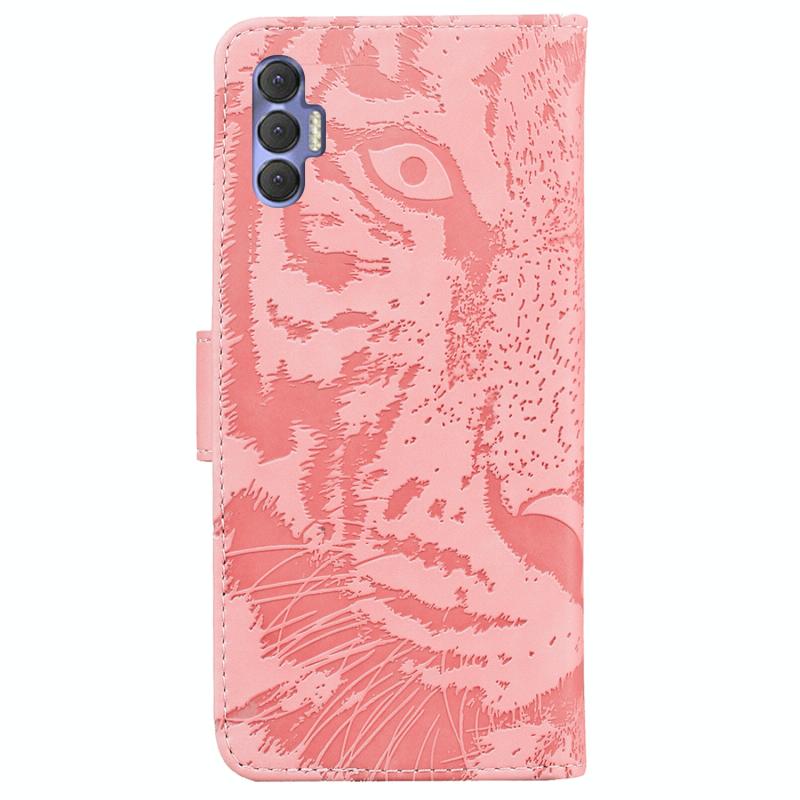 Θήκη τηλεφώνου δερμάτινη, οριζόντια, με σχέδιο Tiger Embossing για Tecno Spark 8P (Ροζ)