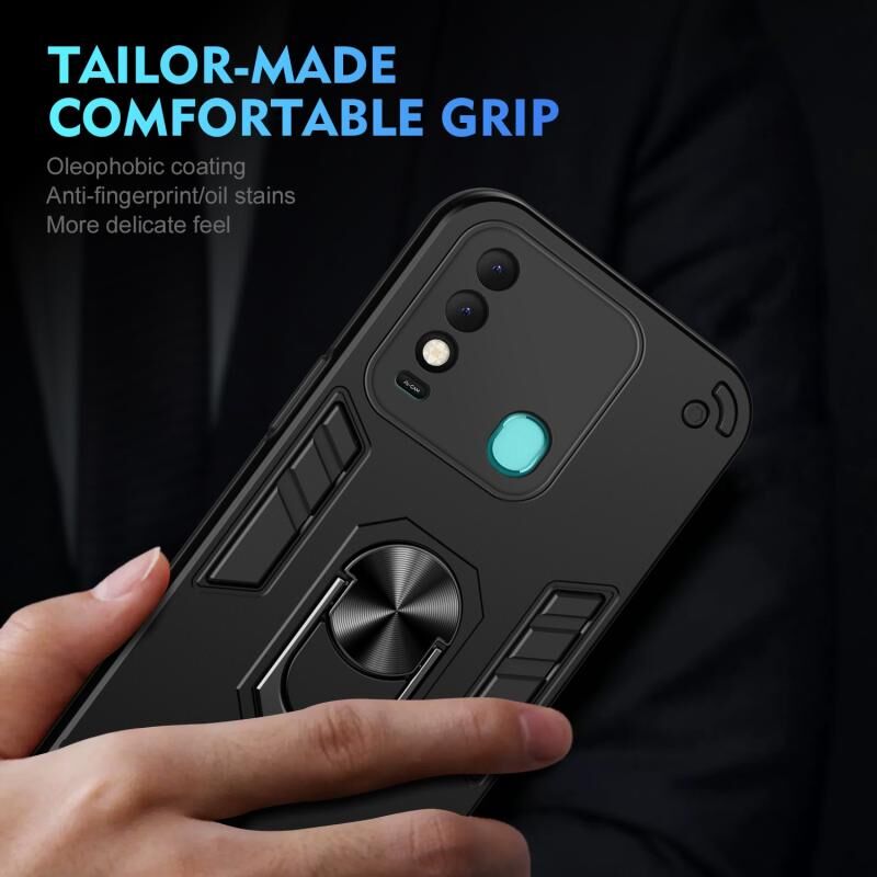 For Tecno Spark 8T Shockproof Metal Ring Holder Phone Case(Black)