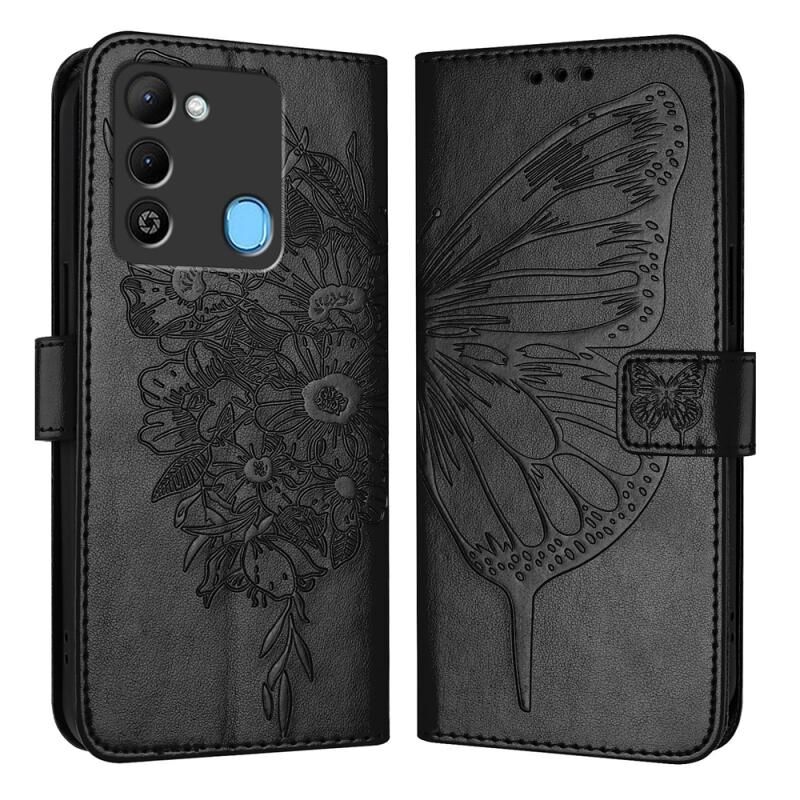 Θήκη τηλεφώνου Tecno Spark 9 με ανάγλυφο σχέδιο πεταλούδας από δέρμα (Μαύρο)