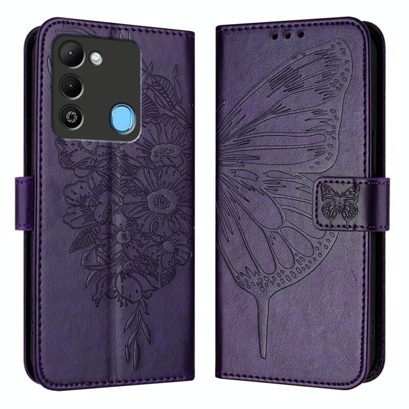 For Tecno Spark 9 Embossed Butterfly Leather Phone Case(Dark Purple)