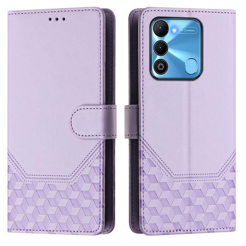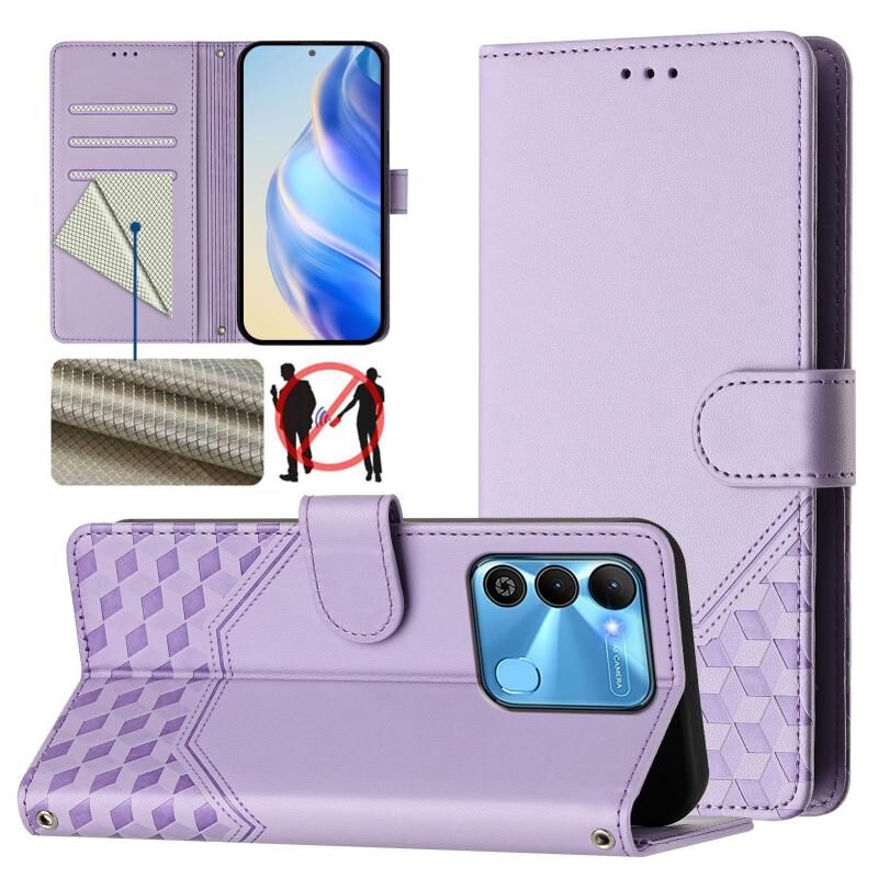 Για Tecno Spark 9 Honeycomb ανάγλυφο RFID δερμάτινη θήκη τηλεφώνου (Light Purple)