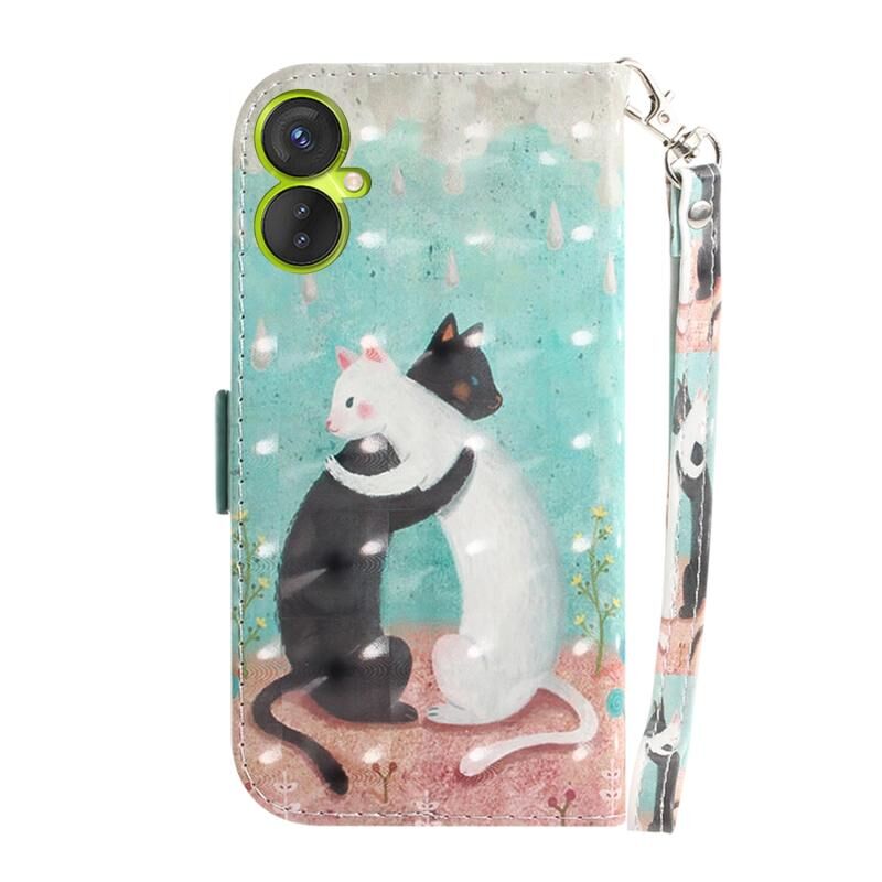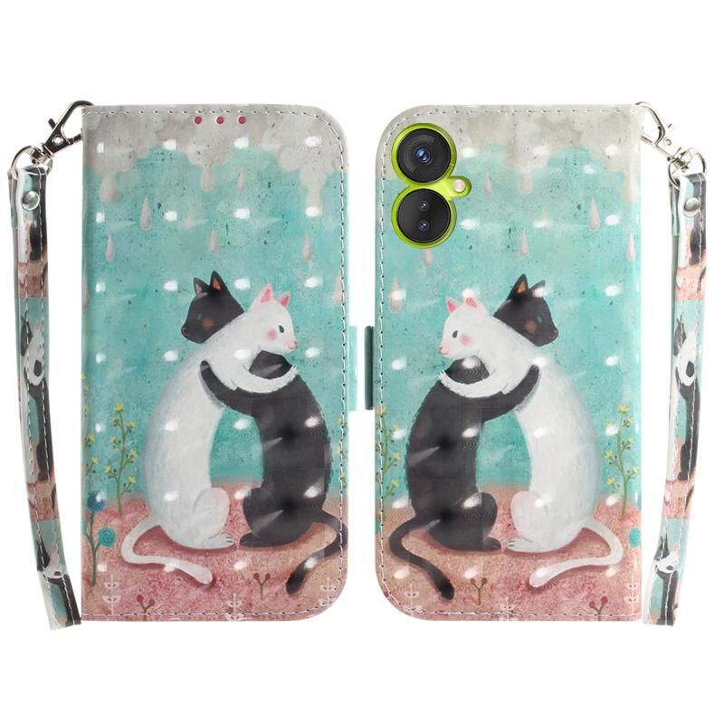 Θήκη τηλεφώνου δερμάτινη, οριζόντια, αναδιπλούμενη, με έγχρωμο 3D σχέδιο για Tecno Spark 9 Pro (Μαύρη Λευκή Γάτα)