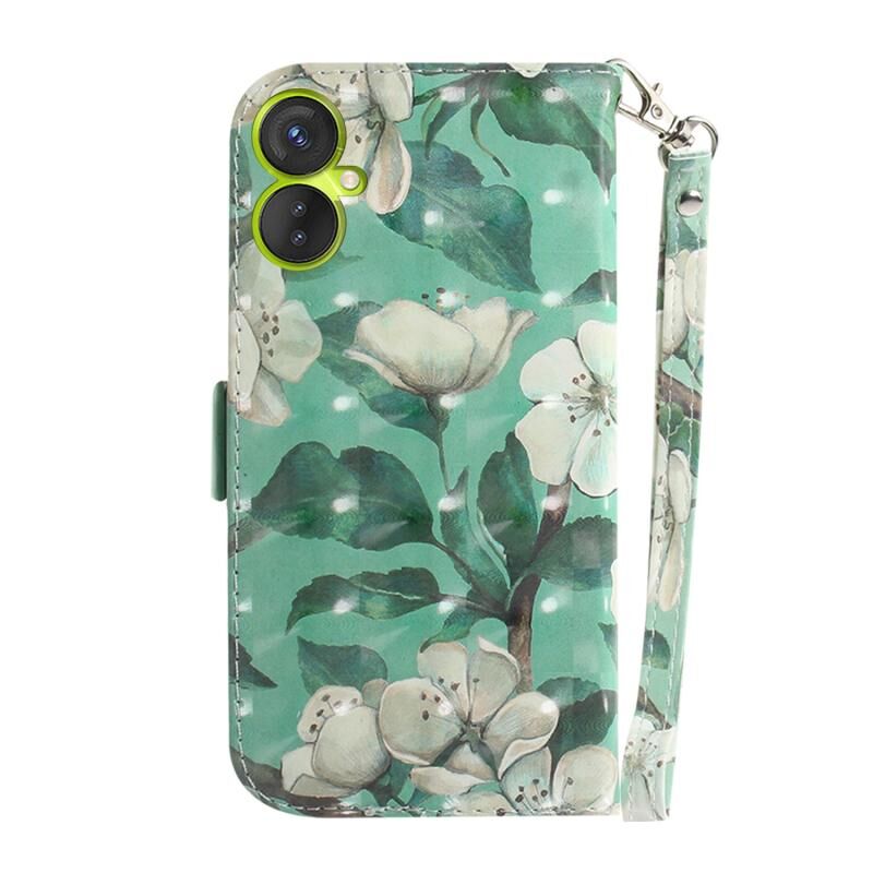 Θήκη τηλεφώνου δερμάτινη, οριζόντια, αναδιπλούμενη, με 3D χρωματιστό σχέδιο για Tecno Spark 9 Pro (Ακουαρέλα Λουλούδι)