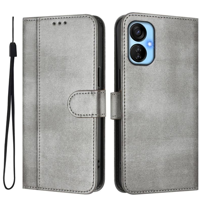 For Tecno Spark 9 Pro / 9T Line Splicing Buckle Retro Leather Phone Case(Grey)