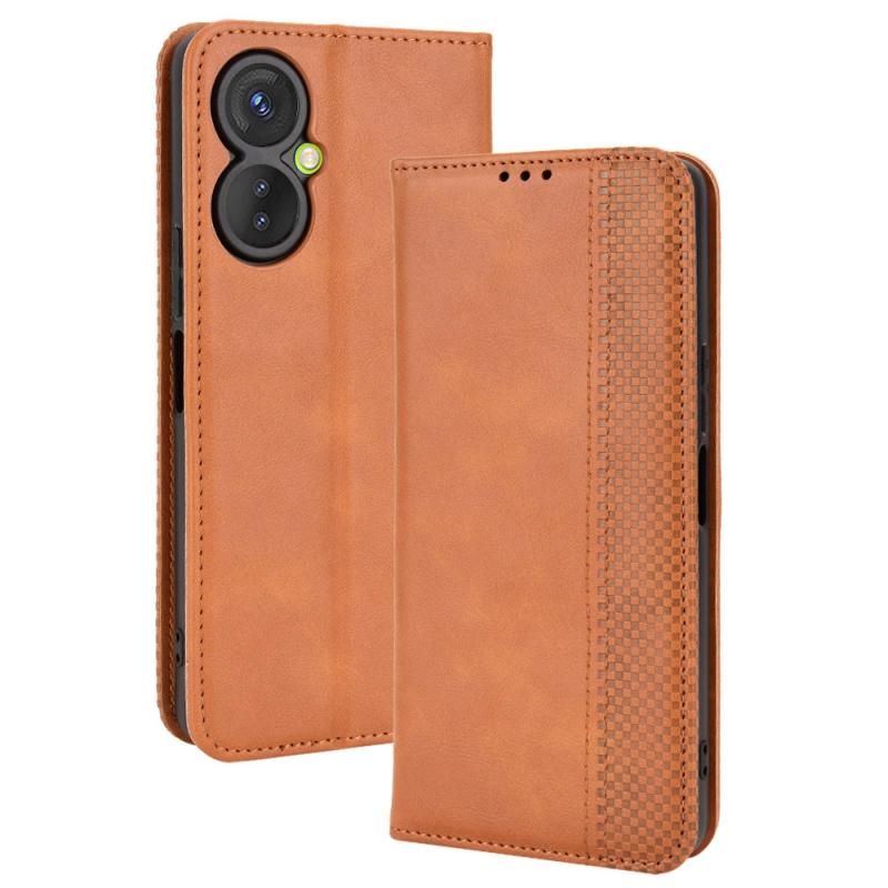 Θήκη τηλεφώνου δερμάτινη με μαγνητικό κούμπωμα και ανάγλυφη υφή retro για Tecno Spark 9 Pro (Καφέ)