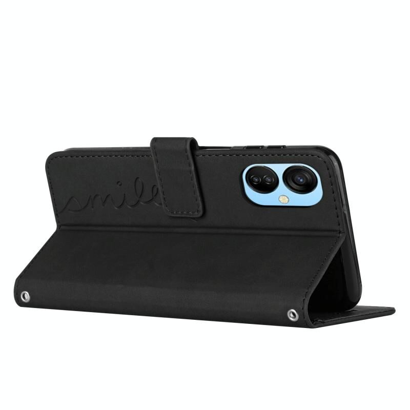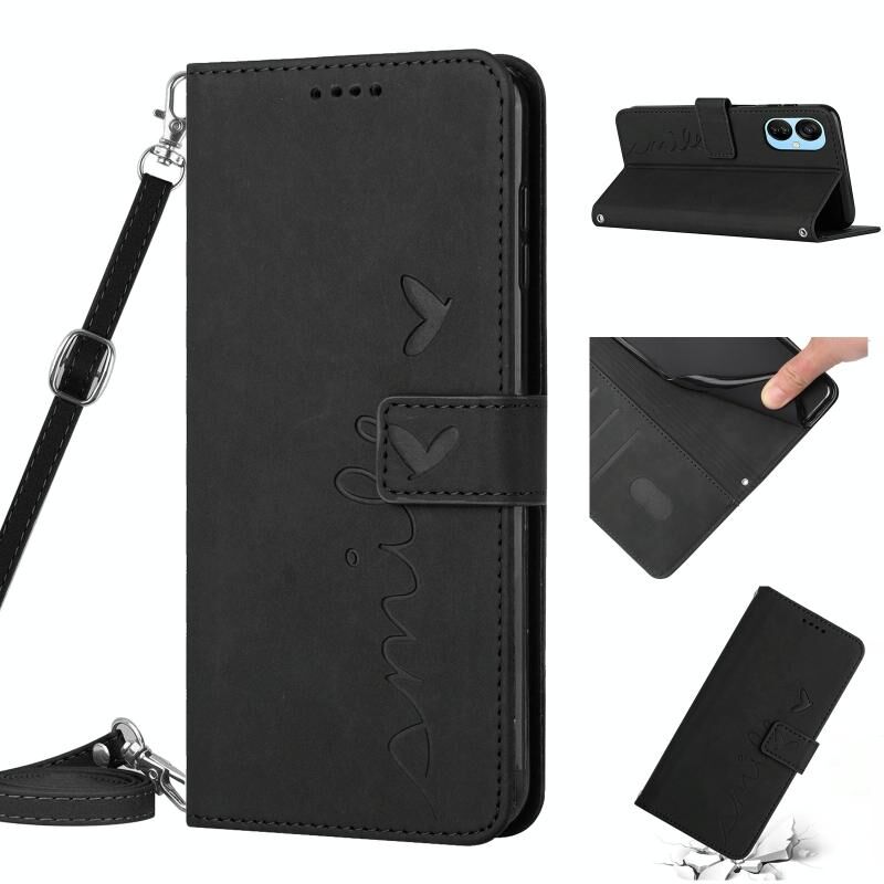 Για Tecno Spark 9 Pro Skin Feel καρδιά μοτίβο δερμάτινη θήκη τηλεφώνου με κορδόνι (Μαύρο)