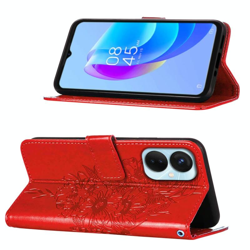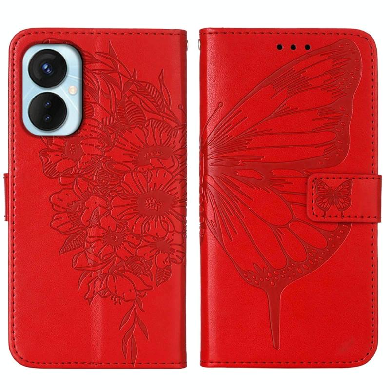 Θήκη τηλεφώνου από δέρμα με ανάγλυφο σχέδιο πεταλούδας, τύπου flip, για Tecno Spark 9 Pro/Spark 9T (Γκρι)