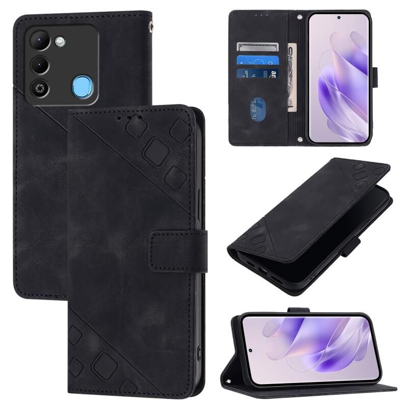 Για Tecno Spark 9 Skin Feel ανάγλυφη δερμάτινη θήκη τηλεφώνου (μαύρο)
