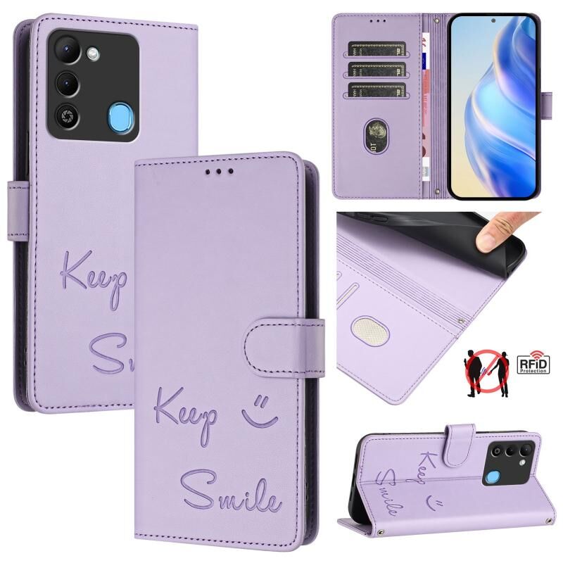 For Tecno Spark 9 Smile Embossing RFID Leather Phone Case(Light Purple)