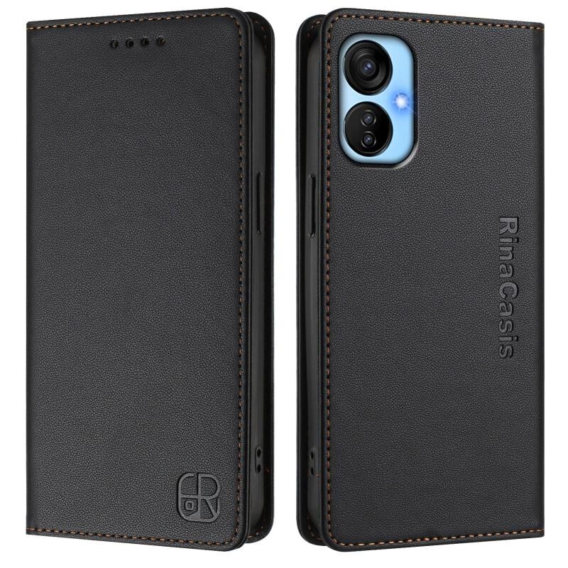 For Tecno Spark 9T / 9 Pro RC01 Dual-Folded Magnetic Suction RFID Leather Phone Case(Black)