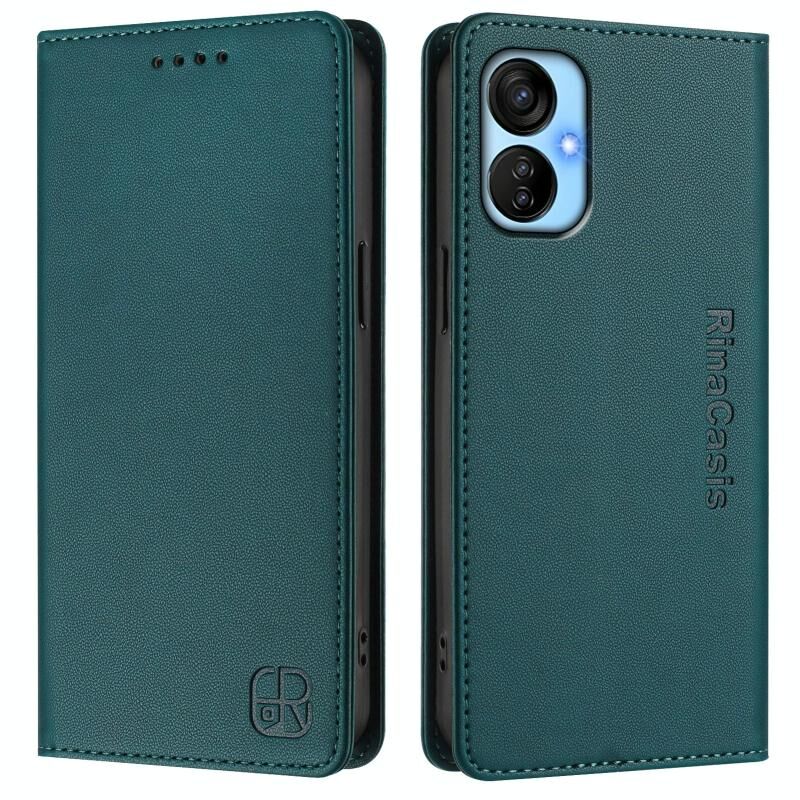 For Tecno Spark 9T / 9 Pro RC01 Dual-Folded Magnetic Suction RFID Leather Phone Case(Dark Green)