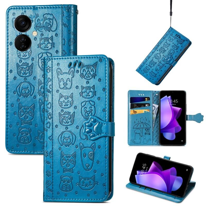 Θήκη τηλεφώνου Tecno Spark 9T με ανάγλυφο σχέδιο γάτας και σκύλου από δέρμα (Μπλε)