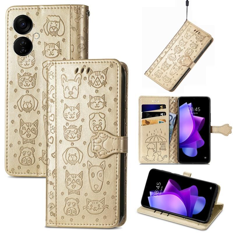 Θήκη τηλεφώνου Tecno Spark 9T με ανάγλυφο σχέδιο γάτας και σκύλου από δέρμα (Μπλε)