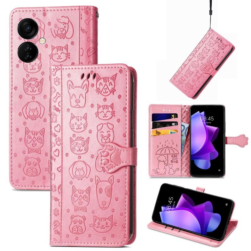 Θήκη τηλεφώνου Tecno Spark 9T με ανάγλυφο σχέδιο γάτας και σκύλου από δέρμα (Μπλε)