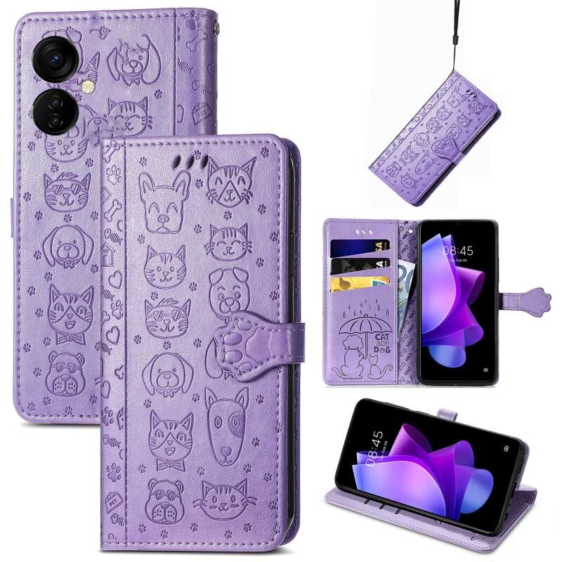 Θήκη τηλεφώνου Tecno Spark 9T με ανάγλυφο σχέδιο γάτας και σκύλου από δέρμα (Μπλε)
