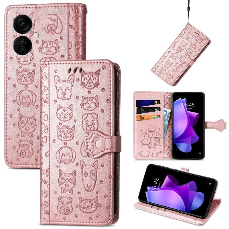Θήκη τηλεφώνου Tecno Spark 9T με ανάγλυφο σχέδιο γάτας και σκύλου από δέρμα (Μπλε)
