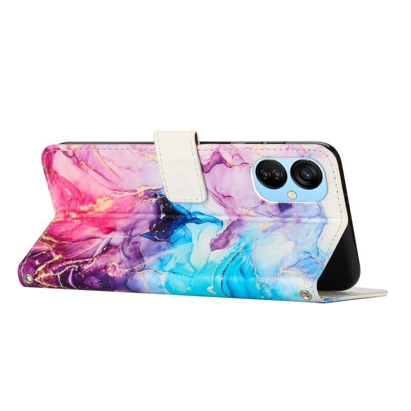 Θήκη τηλεφώνου Tecno Spark 9T σε στυλ τσάντας με ζωγραφισμένο σχέδιο μαρμάρου από δέρμα (Ροζ Μωβ)