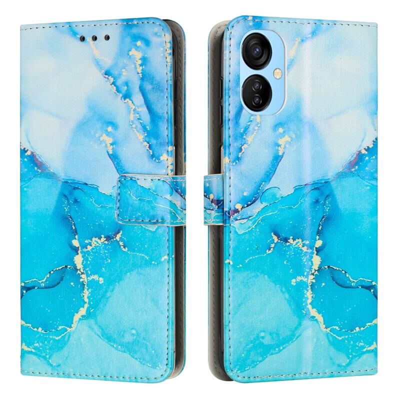 Θήκη τηλεφώνου Tecno Spark 9T από δέρμα με σχέδιο μαρμάρου (Μπλε Πράσινο)