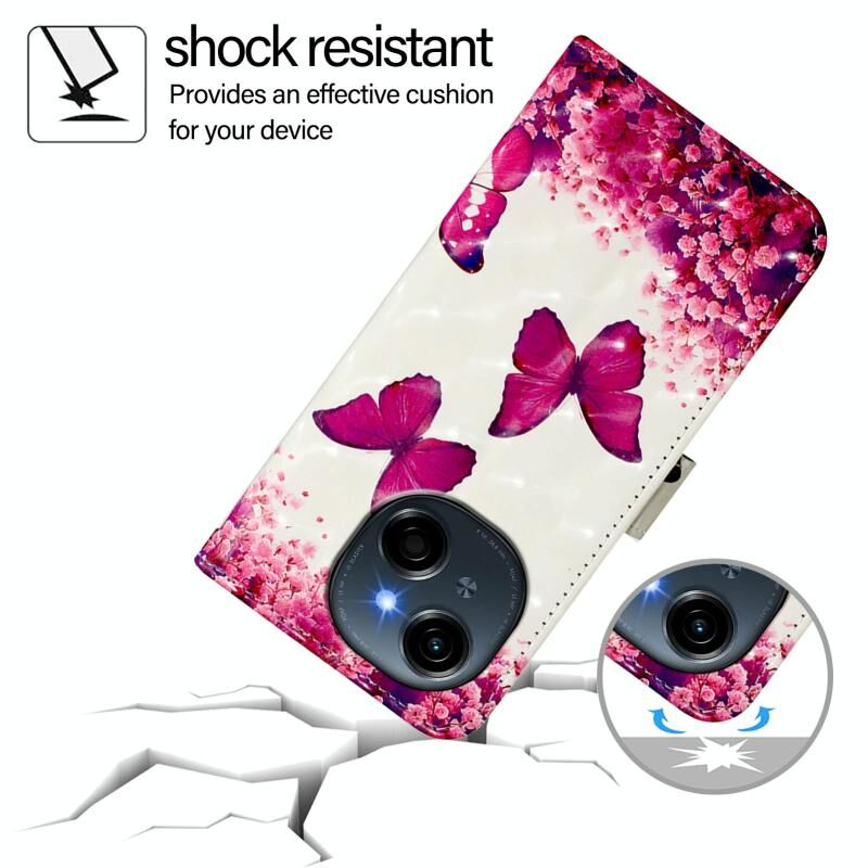 Θήκη τηλεφώνου από δέρμα με οριζόντια αναδίπλωση και τρισδιάστατη ζωγραφική για Tecno Spark Go 1 / Go 2025 (Ροζ Πεταλούδα)