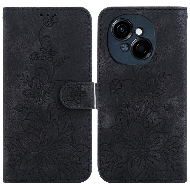 Θήκη τηλεφώνου από δέρμα με ανάγλυφο Lily για Tecno Spark Go 1 / Pop 9 Pro (Καφέ)