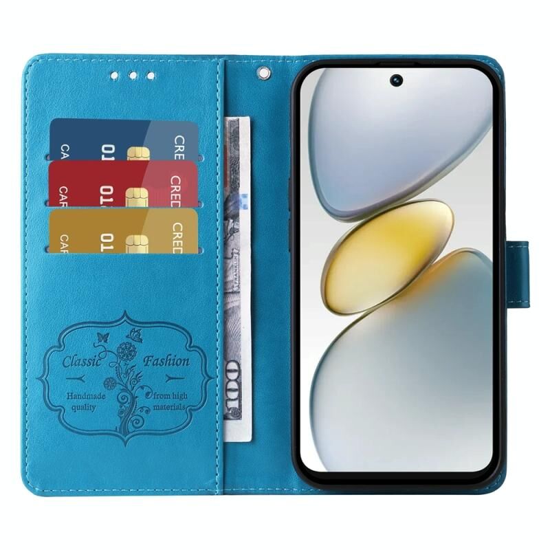Θήκη τηλεφώνου από δέρμα με ανάγλυφα λουλούδια και πεταλούδες για Tecno Spark Go 1 / Pop 9 / Spark Go 2025 (Μωβ)