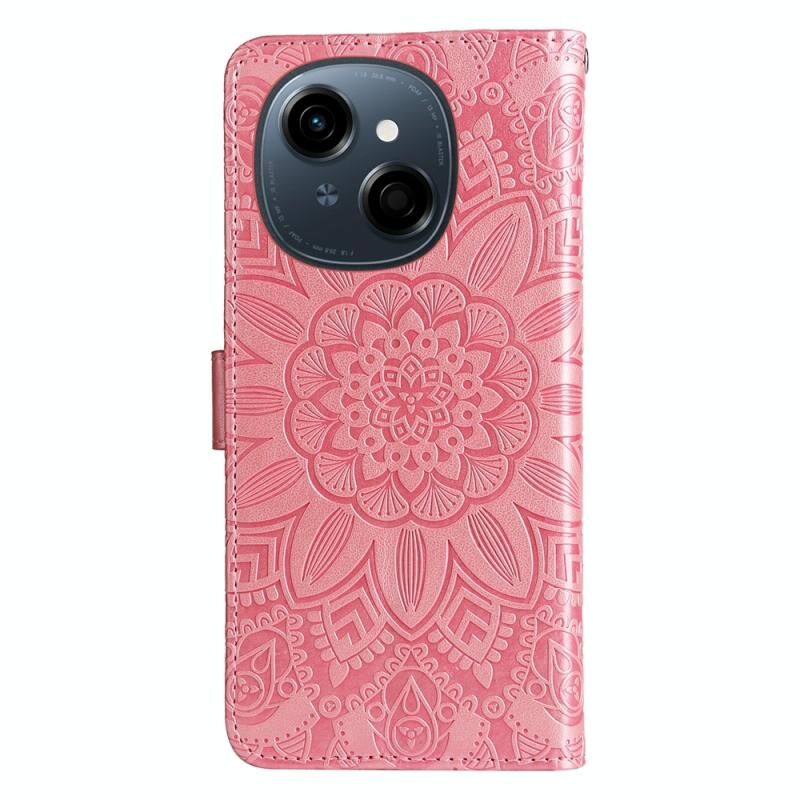 Θήκη τηλεφώνου από δέρμα με ανάγλυφο ηλίανθο για Tecno Spark Go 1 / Pop 9 / Spark Go 2025 (Κόκκινο)