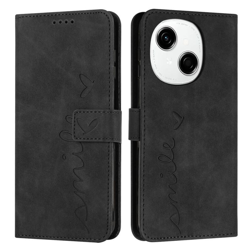 Για Tecno Spark Go 1 Skin Feel Heart ανάγλυφη δερμάτινη θήκη τηλεφώνου (μαύρο)