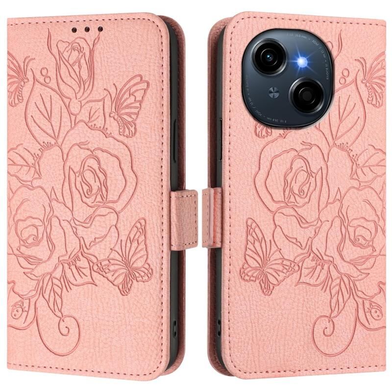 For Tecno Spark Go 1 / Spark Go 2025 Embossed Rose RFID Anti-theft Leather Phone Case(Pink)