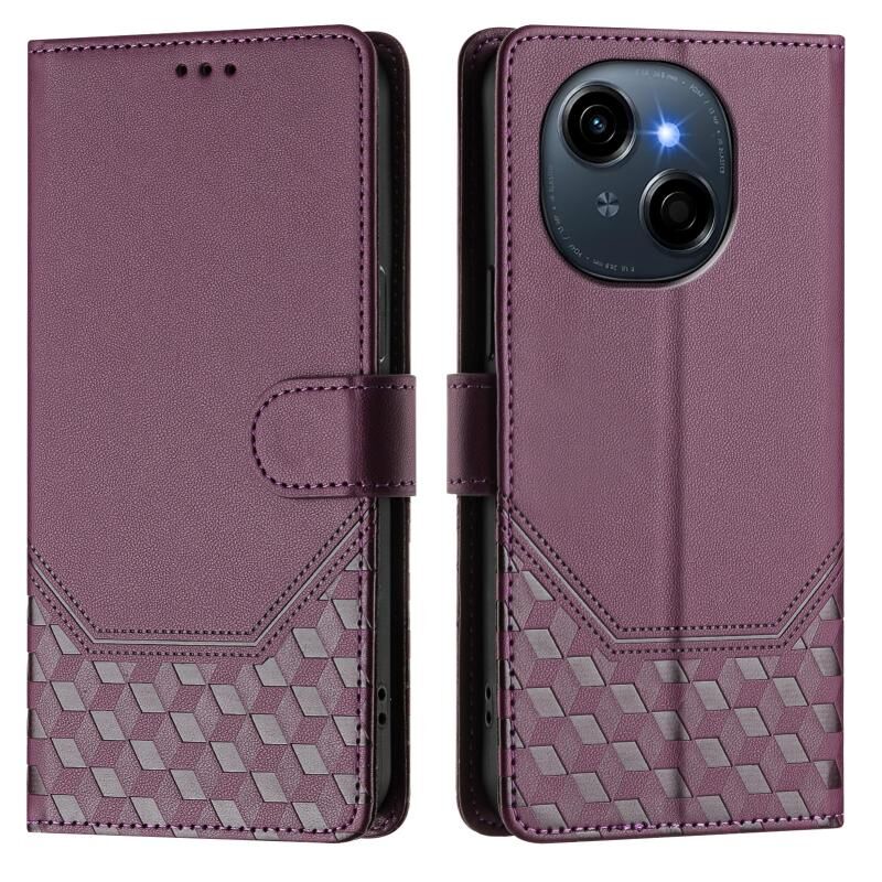 Για Tecno Spark Go 1 / Spark Go 2025 Honeycomb ανάγλυφη RFID δερμάτινη θήκη τηλεφώνου (Violet)