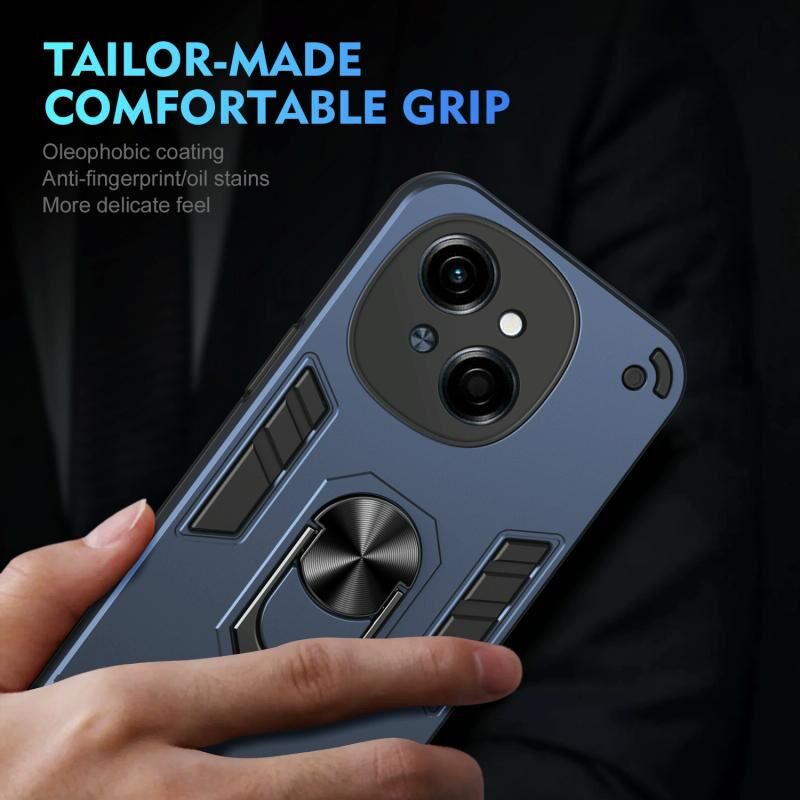 For Tecno Spark Go 1 / Spark Go Shockproof Metal Ring Holder Phone Case(Blue)