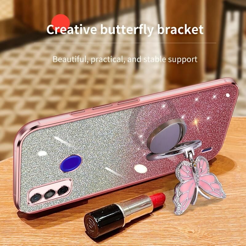 Για Tecno Spark Go 2020 Επιμεταλλωμένο διαβάθμιση Glitter πεταλούδα κάτοχος TPU τηλέφωνο υπόθεση (μαύρο)