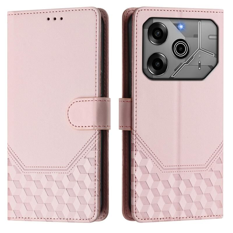 Για Tecno Spark Go 2021 Honeycomb ανάγλυφο RFID δερμάτινη θήκη τηλεφώνου (ροζ)
