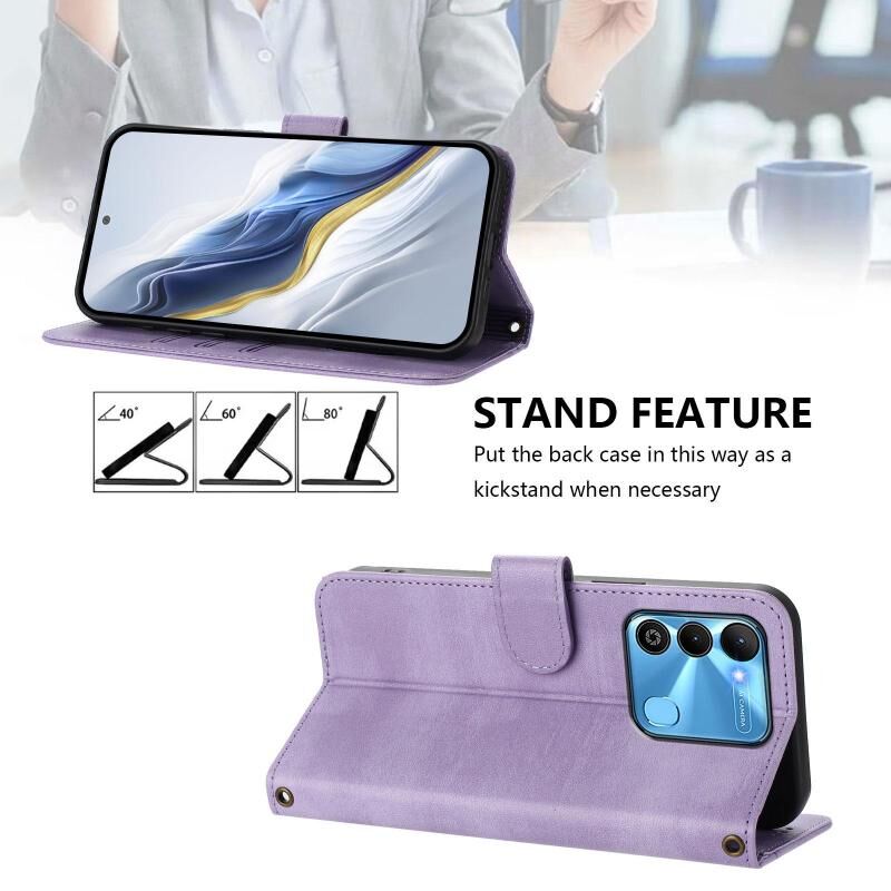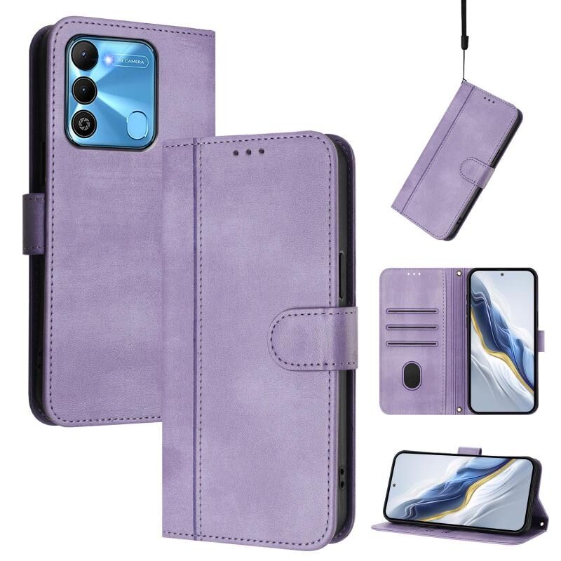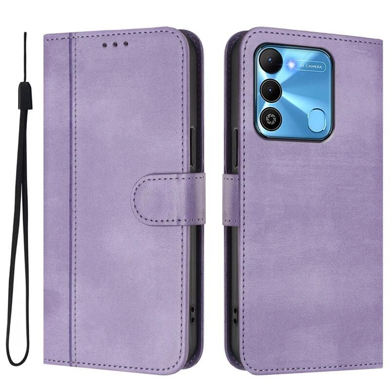 For Tecno Spark Go 2022 / 8C / 9 Line Splicing Buckle Retro Leather Phone Case(Purple)