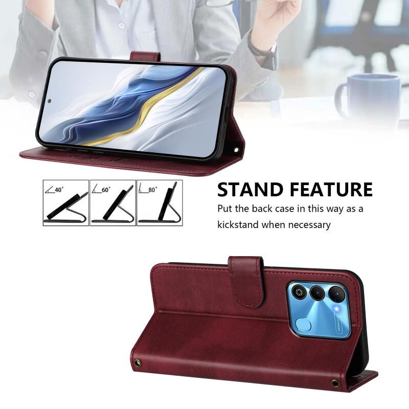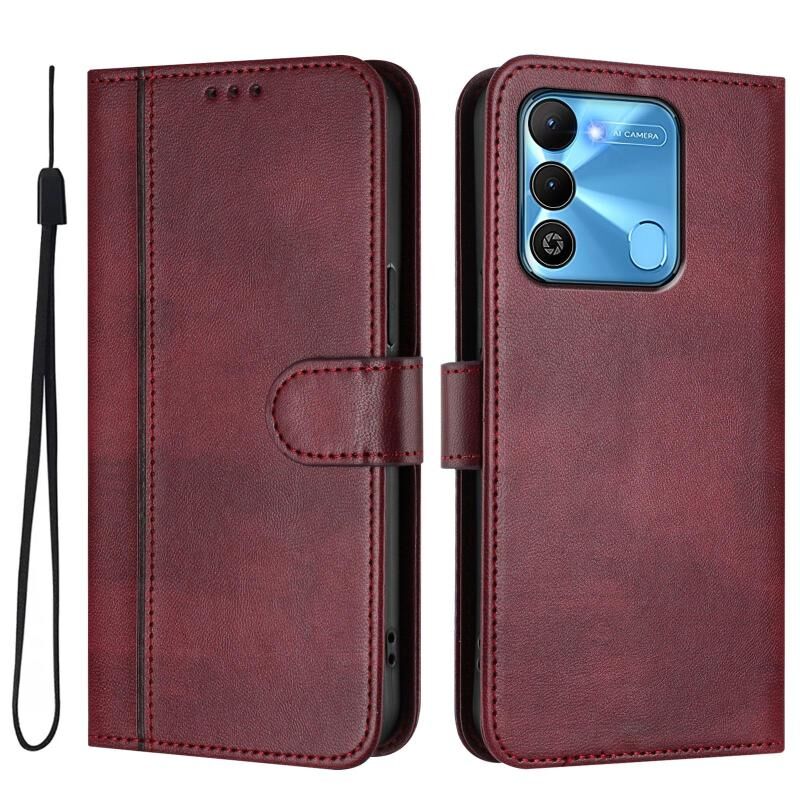 For Tecno Spark Go 2022 / 8C / 9 Line Splicing Buckle Retro Leather Phone Case(Wine Red)