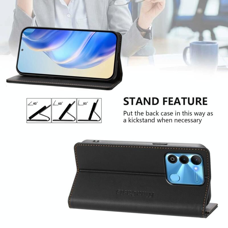 For Tecno Spark GO 2022 / 8C / 9 RC01 Dual-Folded Magnetic Suction RFID Leather Phone Case(Black)