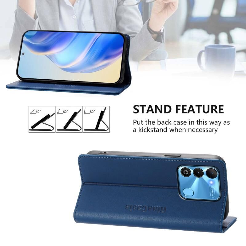 For Tecno Spark GO 2022 / 8C / 9 RC01 Dual-Folded Magnetic Suction RFID Leather Phone Case(Dark Blue)
