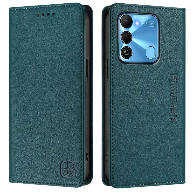 For Tecno Spark GO 2022 / 8C / 9 RC01 Dual-Folded Magnetic Suction RFID Leather Phone Case(Dark Green)