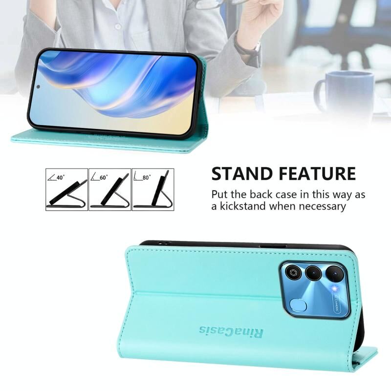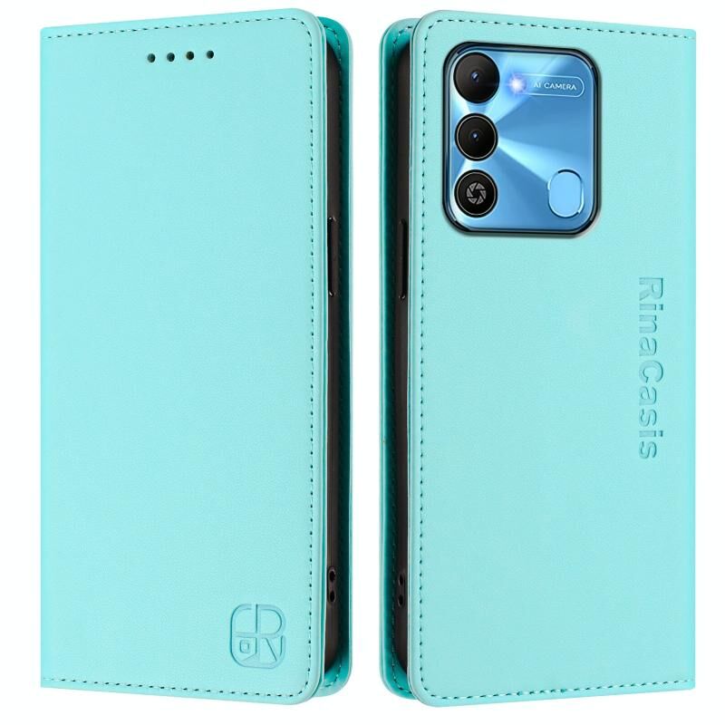 For Tecno Spark GO 2022 / 8C / 9 RC01 Dual-Folded Magnetic Suction RFID Leather Phone Case(Mint Green)
