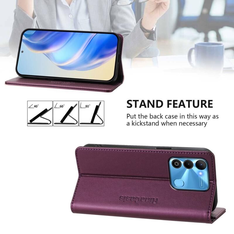 Θήκη τηλεφώνου από δέρμα με μαγνητική απορρόφηση και διπλή πτυχή για Tecno Spark GO 2022 / 8C / 9 RC01 (Βιολετί)