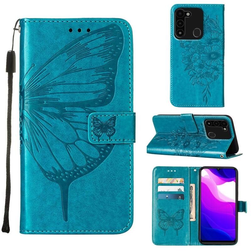 Θήκη τηλεφώνου Tecno Spark Go 2022 από δέρμα με ανάγλυφο σχέδιο πεταλούδας (Γκρι)