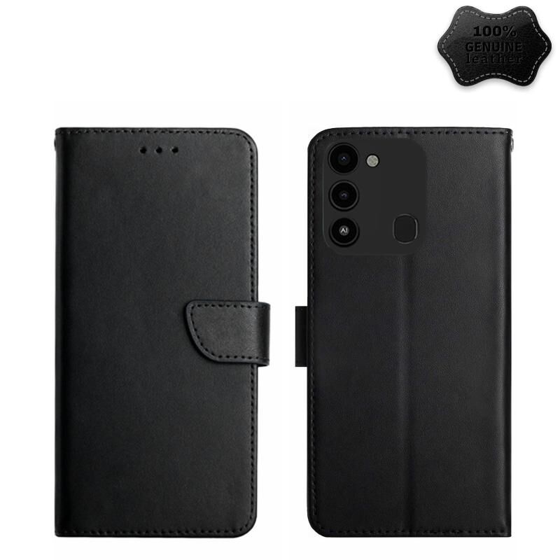 Θήκη τηλεφώνου οριζόντιας αναδίπλωσης από γνήσιο δέρμα για Tecno Spark Go 2022, ανθεκτική στα δακτυλικά αποτυπώματα (Μαύρο)