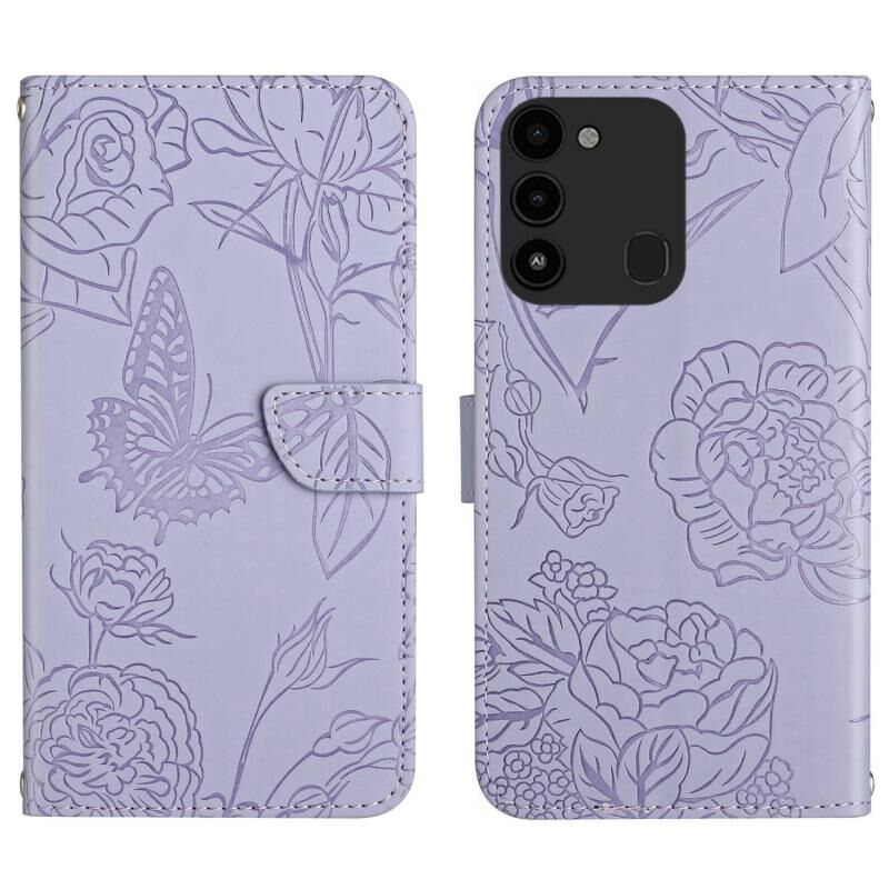 Για Tecno Spark Go 2022 HT03 Skin Feel Πεταλούδα ανάγλυφο Flip υπόθεση τηλεφώνου δέρμα (μωβ)