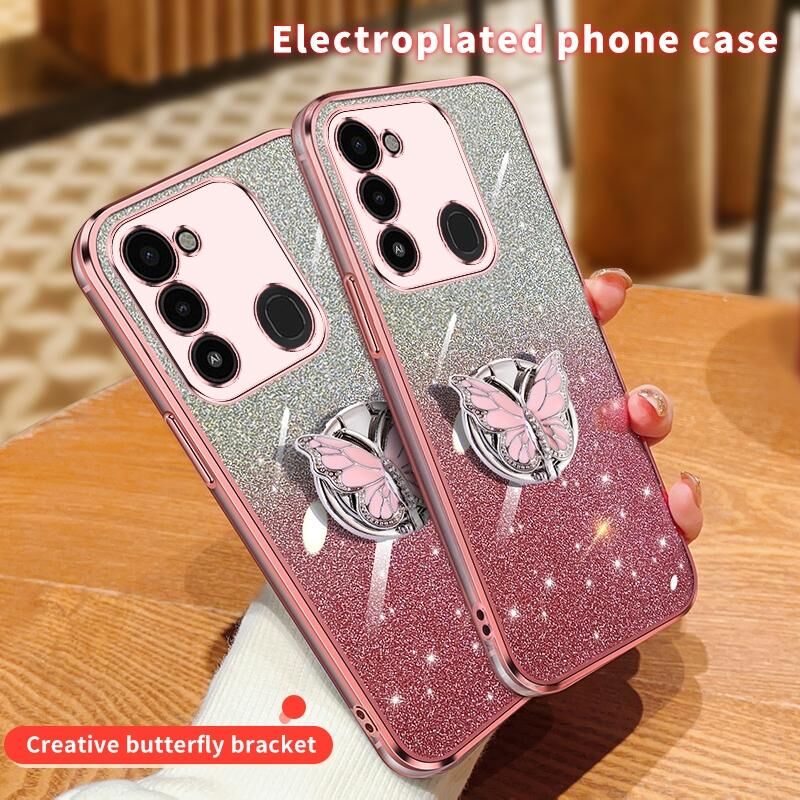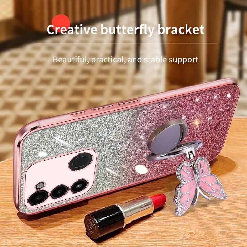 Για Tecno Spark Go 2022 Επιμεταλλωμένο διαβάθμιση Glitter πεταλούδα κάτοχος TPU τηλέφωνο υπόθεση (μαύρο)