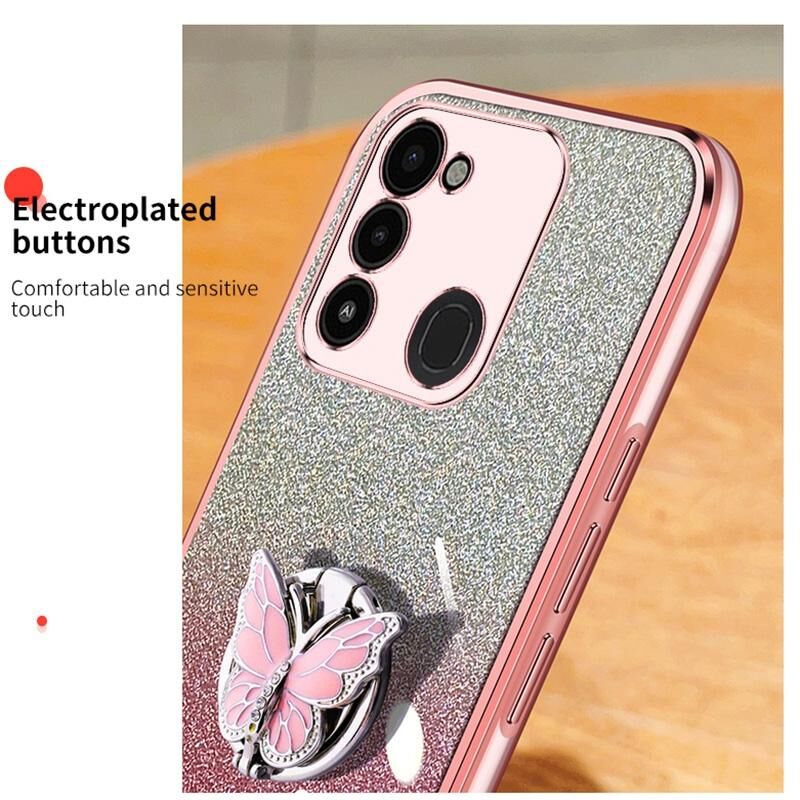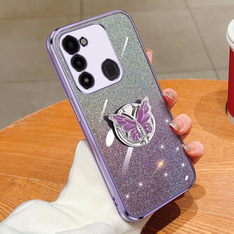 Για Tecno Spark Go 2022 Επιμεταλλωμένο διαβάθμιση Glitter πεταλούδα κάτοχος TPU τηλέφωνο υπόθεση (μωβ)