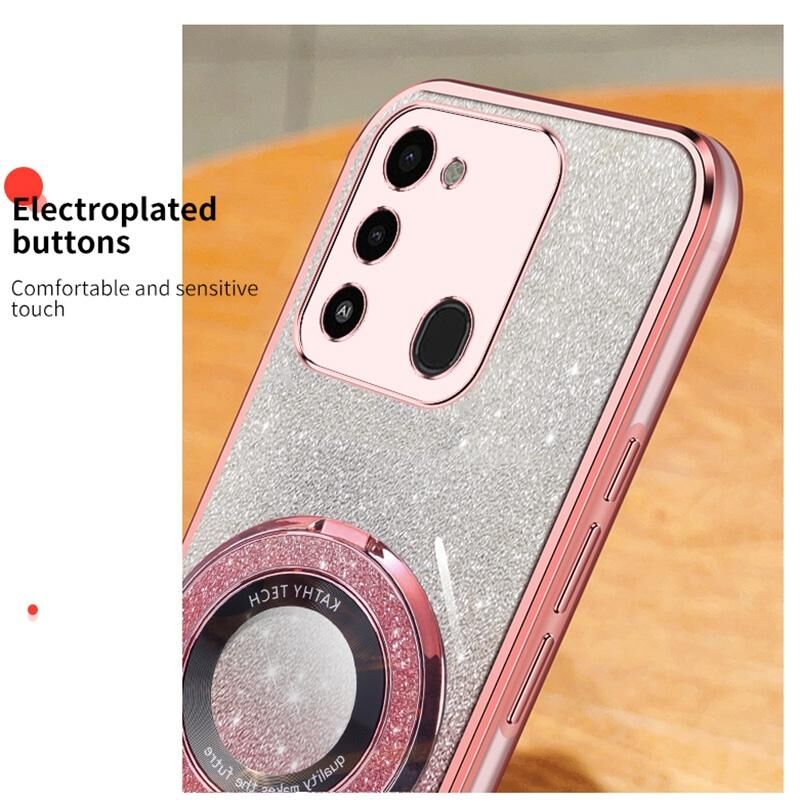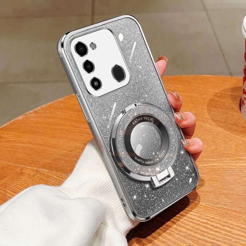 Για Tecno Spark Go 2022 Επιμεταλλωμένο διαβάθμιση Glitter Γύρος κάτοχος TPU τηλέφωνο υπόθεση (ασημί)