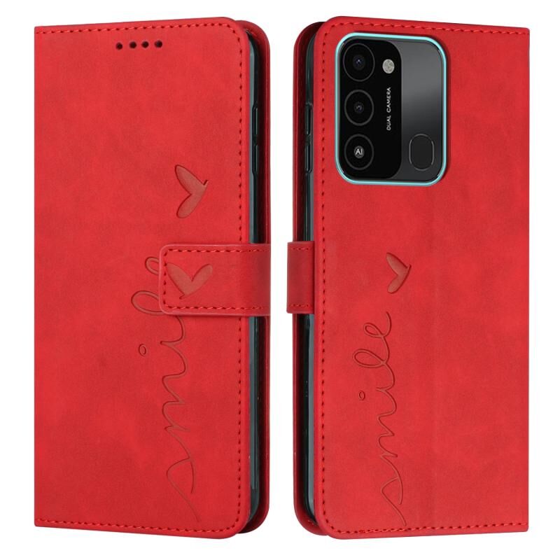 Για Tecno Spark Go 2022 δέρμα αίσθηση καρδιά μοτίβο δερμάτινη θήκη τηλεφώνου (κόκκινο)