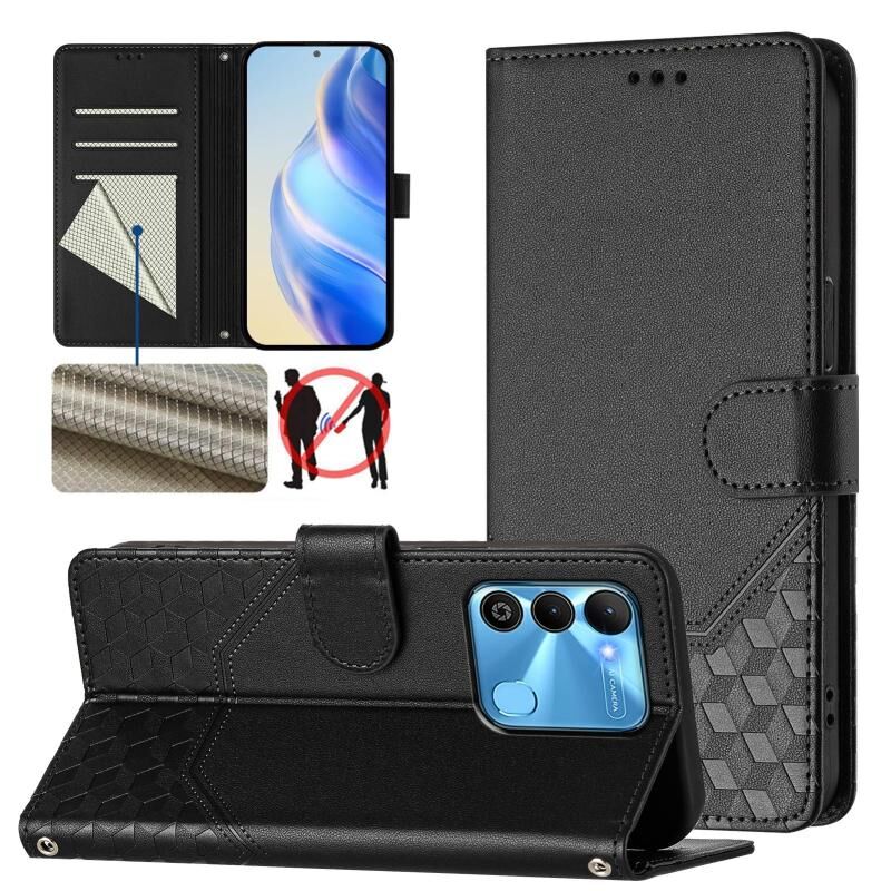 Για Tecno Spark Go 2022 / Spark 8C Honeycomb ανάγλυφη RFID δερμάτινη θήκη τηλεφώνου (Μαύρο)