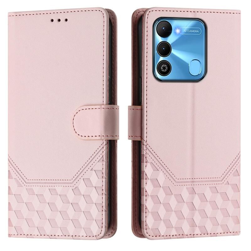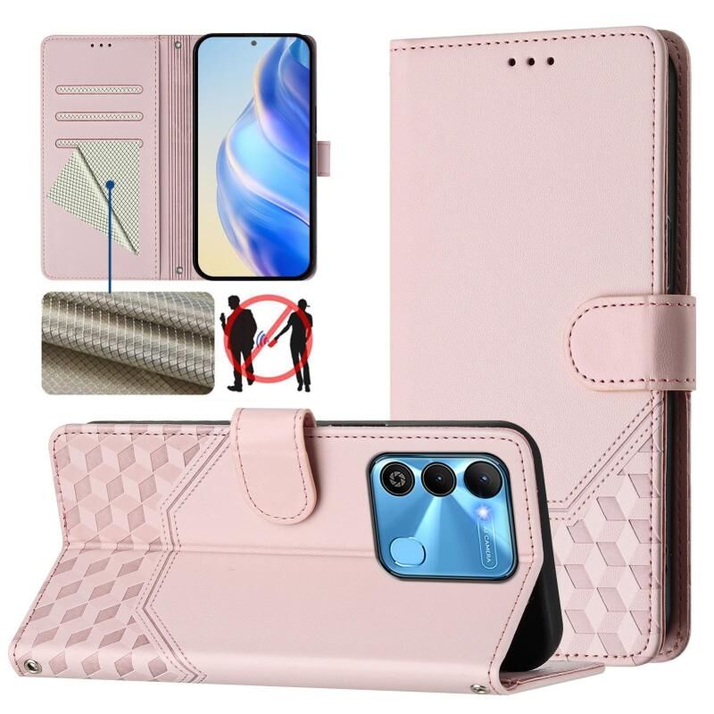 Για Tecno Spark Go 2022 / Spark 8C Honeycomb ανάγλυφη RFID δερμάτινη θήκη τηλεφώνου (ροζ)