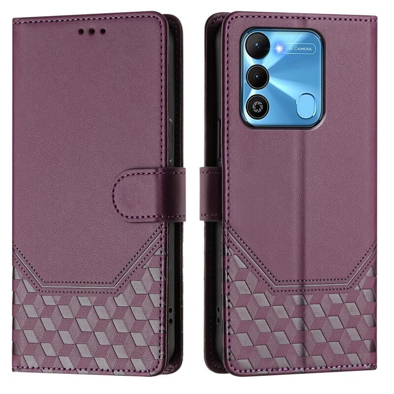 Για Tecno Spark Go 2022 / Spark 8C Honeycomb ανάγλυφη RFID δερμάτινη θήκη τηλεφώνου (Violet)