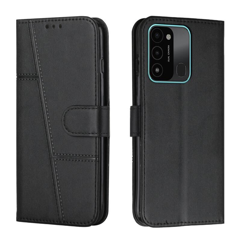 Για Tecno Spark Go 2022 / Spark 8C ραφή μοσχάρι υφή πόρπη δερμάτινη θήκη τηλεφώνου (μαύρο)